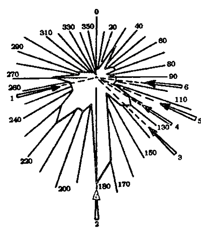 La dirección de los troncos de los árboles caídos en el epicentro de la explosión.